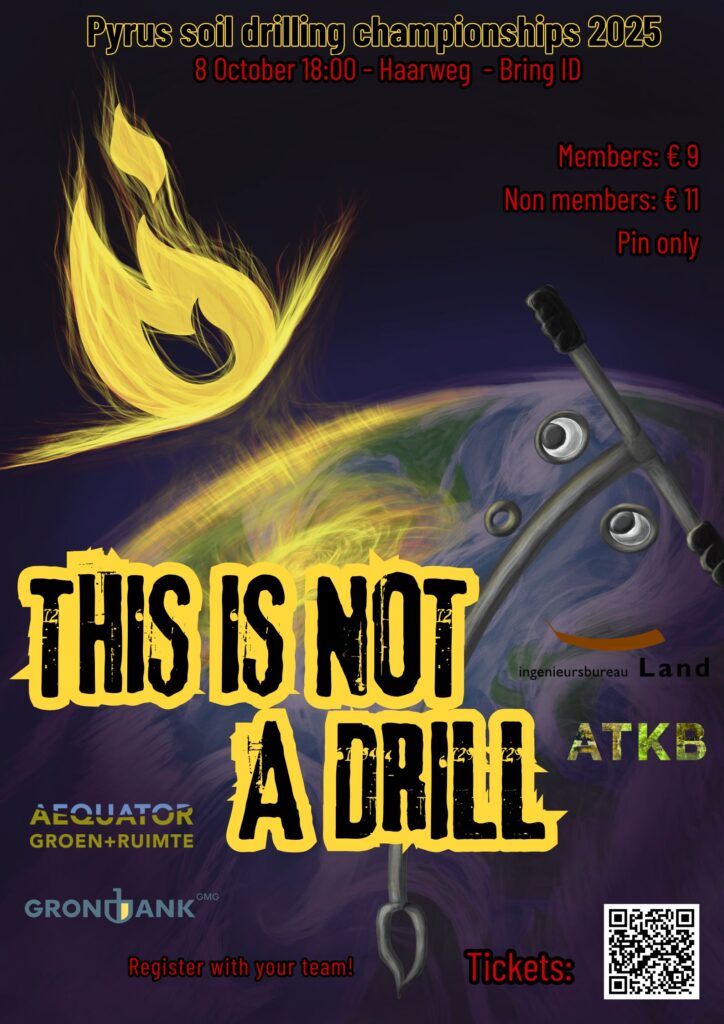 The goal of Pyrus is to strengthen the relation between students and between students and teachers. To achieve this we organise different activities, e.g. weekends, excursions, lectures, drinks and the annual cheese fondue. Once per period (five times a year) our association magazine is spread, which contains articles in Dutch and English. The annual highlight of Pyrus is the SK Grondboren (students Soil Drilling Championship), where we try to drill 1.20 meter into the ground as fast as possible.